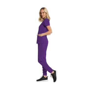 Show moreIntroducing the Scrubs for Women Set 7 Pocket 4-Way Stretch Mock Wrap and Jogger Pant Elements EL9905, a perfect blend of functionality and modern style, designed specifically for hardworking women in the medical and healthcare fields. This expertly crafted set features the elegant EL9115 Women's Mock Wrap Scrub Top and the comfortable EL9315 Women's Jogger Pant. Whether you're on your shift at a hospital, working as a dental assistant, or serving as a vet tech, this set ensures you look professional while feeling your best. With its eye-catching eggplant color, the EL9905 elevates your work attire while providing unparalleled comfort and utility.