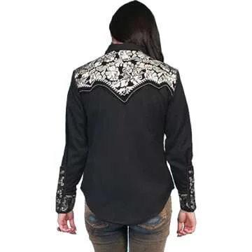 Introducing the stunning Scully Floral Embroidered Snap Front Western Shirt, a true statement piece that marries traditional western aesthetics with modern elegance. Crafted from a high-quality polyester and rayon blend, this shirt offers a comfortable fit and a luxurious feel, making it perfect for both casual outings and more formal events. The delicate floral embroidery adds a touch of grace, while the unique spread collar and pearl snap placket...