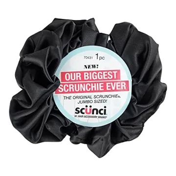 Show more Introducing the enchanting Scunci by Conair The Original Scrunchie – a staple accessory for every hair type! Crafted from premium washable black nylon silk, this jumbo-sized scrunchie effortlessly combines functionality with a touch of elegance. Whether your hair is long, thick, or unruly, this scrunchie guarantees a gentle yet secure hold, allowing you to tie up your locks without the hassle of tugging or pulling. With its unique waffle-knit design, not only does it promise a snug fit, but it also adds a stylish flair to any look. Perfect for gym sessions, casual outings, or more formal events, this hair accessory will quickly become your go-to for effortless styling!