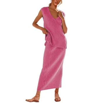 Show moreIntroducing the SCUSTY Women's 2 Piece Sweater Skirt Set, a harmonious blend of comfort and chic. Crafted with an exquisite ribbed fabric, this stunning outfit will elevate your fashion game, ensuring that you stand out whether you’re wandering through European streets or enjoying a sunny day out. The sleeveless vest top features a v-neckline for a touch of delicacy and femininity, while its relaxed silhouette guarantees breathability and unrestricted movement. Coupled with a high-rise skirt that beautifully sits at the waist and showcases a stylish side slit, this set is perfect for any occasion, striking the ideal balance between style and practicality.