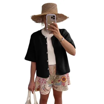 Show moreDiscover the perfect blend of style, comfort, and versatility with the SCUSTY Women's Lightweight Cardigan Short Sleeve Button-Down Summer Cardigan Sweater. This exquisite piece is expertly crafted from premium, soft knit fabric that skims the skin gently, delivering an incredibly luxurious feel. Designed with every woman's needs in mind, this lightweight cardigan is not just cozy and breathable, but it's also a fashion-forward staple that can be layered and styled throughout every season. Its functional button-down front and classic round neckline add a touch of sophistication, making it a must-have in your wardrobe.