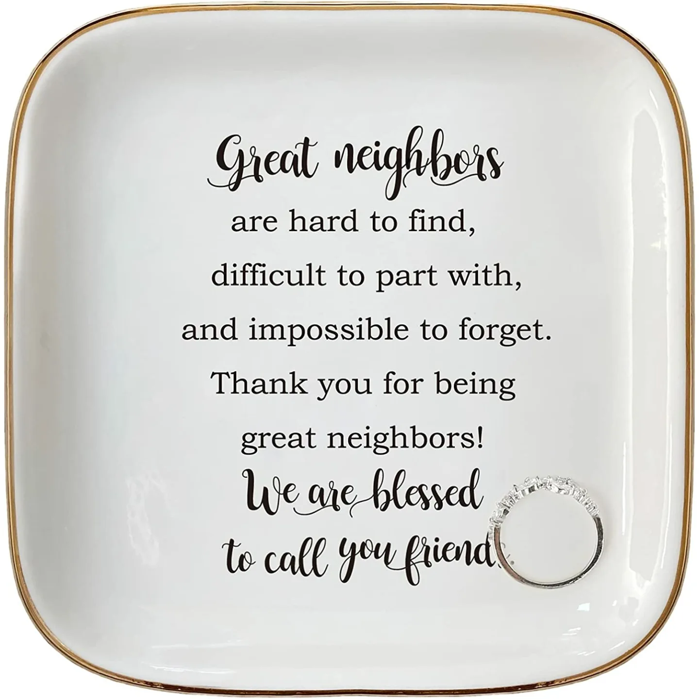 This beautiful ring dish is best suited for anyone who cherishes elegant yet functional home accessories. Primarily aimed at adults, it is an excellent gift for neighbors, friends, and family members, especially those who appreciate meaningful keepsakes and high-quality craftsmanship.