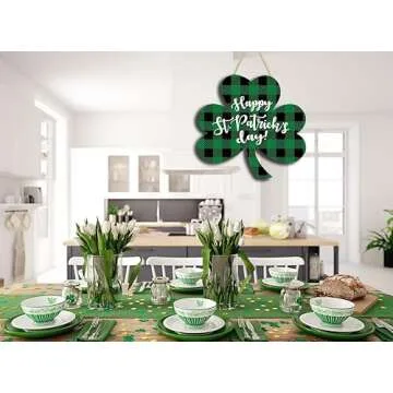 Show moreIntroduce a touch of festive charm into your home this season with the **SCYPRUTH Happy St Patrick Day Wooden Sign**. The beautiful green buffalo plaid design brings a unique flair to your St Patrick's Day festivities, making it a perfect addition to any decor style. Crafted from high-quality natural wood, this eye-catching sign features a delightful shamrock design adorned with an inviting message: “Happy St Patrick Day”. This durable and reliable wreath is not only a decoration but a heartfelt symbol of good luck and celebration, ideal for setting the tone of joy and togetherness.