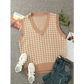 Sdencin Houndstooth Knit Sweater Vest - Stylish, Comfortable & Versatile
