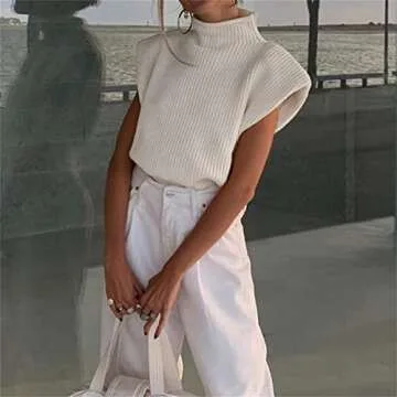 Show moreIntroducing the Sdencin Women Sleeveless Shoulder Pad Knit Sweater Vest, an essential addition to your wardrobe! This stylish high neck cap sleeve pullover is crafted from a comfortable solid knit blend of cotton and polyester, ensuring it is both skin-friendly and lightweight. Perfect for lounging or layering up, this versatile sweater vest is designed for wear in fall, winter, and spring. Its loose fit ensures you can move freely, offering a chic yet relaxed appearance that’s ideal for any casual outing.