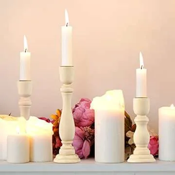 SDUSEIO 3 Pieces Wooden Candle Holders Wooden Farmhouse Candlesticks Unfinished Pillar Taper Candle Holders for DIY Spiral Taper Candle Home Decor,4.92inch,6.88inch,7.87inch