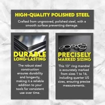 SE 13-Inch Polished Steel Ring Mandrel - Marked 1 to 16 US Sizes, Ungrooved, with Knurled Handle for Jewelry Making and Sizing - JT-SP2