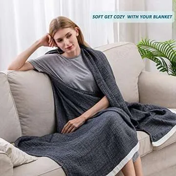 Show more Introducing the SE SOFTEXLY Throw Blanket - where comfort meets style! This lightweight blanket is perfect for year-round use, crafted with a 100% cotton, 4-layer muslin that ensures breathability and ultimate softness. Say goodbye to night sweats, as this blanket is naturally temperature-regulating, giving you a cozy experience without overheating. Designed with modern homes in mind, its free weaving technique allows heat to escape while enabling fresh air to circulate, making it the perfect companion for co-sleeping with infants or snuggling up on cold evenings.