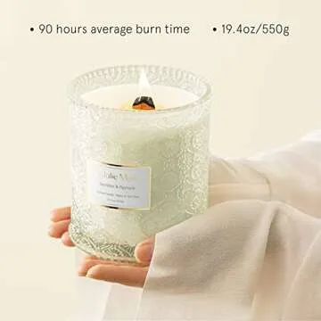This candle features a natural wood wick that provides a soft, crackling sound when lit.