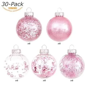 Sea Team 60mm/2.36" Shatterproof Clear Plastic Christmas Tree Ball Ornaments Set, Decorative Hanging Transparent Xmas Baubles with Stuffed Delicate Decorations (30 Counts, Pink)