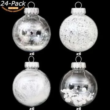 Sea Team 70mm/2.76" Shatterproof Clear Plastic Christmas Ball Ornaments Decorative Xmas Balls Baubles Set with Stuffed Delicate Decorations (24 Counts, White)