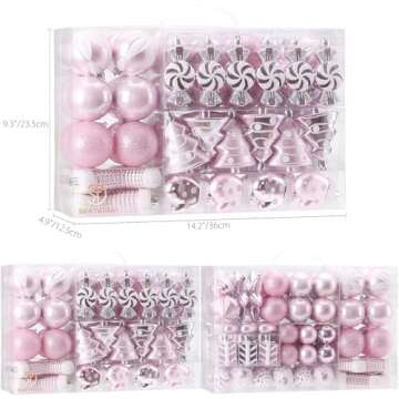 Show more The 77-Pack Diverse Ornaments by Sea Team is a stunning collection designed to elevate your holiday decor. This unique set deviates from the traditional ball-shaped ornaments, offering an exciting array of seasonal colors, elements, and shapes to perfectly cater to any Christmas theme. With a variety of looks and sizes, these ornaments guarantee a stylish arrangement from top to bottom on your beautifully decorated Christmas tree.