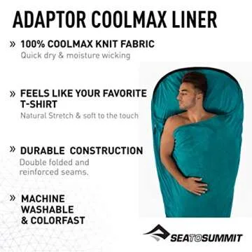 Show moreIntroducing the Adaptor Coolmax Liner from Sea to Summit, the ultimate accessory for any outdoor enthusiast! This remarkable sleep liner is designed to ensure a comfortable and restful night’s sleep, whether you're camping in the wilderness, backpacking through exotic locales, or simply enjoying a night indoors. Crafted with Coolmax technology, this liner excels in wicking moisture away from your body, making it perfect for warm evenings when you want the feeling of being covered without the cling of traditional sheets.