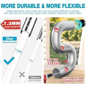 Show moreIntroducing the Sealegend 37-Piece Dryer Vent Cleaner Kit—your ultimate solution for maintaining dryer efficiency and safety! This comprehensive kit features a 33-foot dryer vent brush designed to reach deep into your vent system, coupled with a robust vacuum attachment for hassle-free cleaning. Crafted with premium materials, each tool in this collection ensures you can effectively remove accumulated lint, dirt, and debris, enhancing airflow and reducing fire hazards in your home. Boasting an omnidirectional design, the various brushes provide superior maneuverability, making even the hardest-to-reach areas accessible.