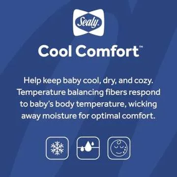 Show moreIntroducing the Sealy Baby Cool Comfort Fitted Waterproof Infant Cooling Crib Mattress Protector Pad—the ultimate solution for parents seeking to provide their little ones with unparalleled comfort and protection. Crafted from temperature-regulating moisture-wicking fibers, this mattress protector adapts to your baby’s body temperature, ensuring they stay cool and dry throughout the night. The robust waterproof barrier protects against moisture, safeguarding the mattress from potential leaks and messes. Moreover, the quilted filling adds a plush layer of comfort to ensure that every nap is soothing and restful, promoting safer sleep for your infant. Designed with a secure fitted stretch skirt, you can trust that this protector will snugly fit USA standard full-size crib and toddler bed mattresses without any shifting or sliding. The Sealy Baby Protector Pad is also machine washable and dryer friendly, making it convenient for busy parents while maintaining its adaptive technology wash after wash.