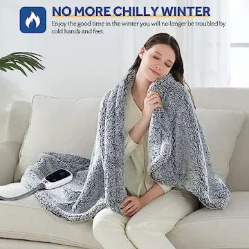 Show more Wrap yourself in the ultimate comfort of the Sealy Electric Blanket Heated Throw! Specifically designed to offer the perfect complement to chilly evenings, this luxurious throw blanket measures 50" x 60" and boasts a plush, double Sherpa material that caresses your skin while keeping you warm and snug. With its state-of-the-art heating technology, you can easily adjust the warmth to your liking, featuring 6 fast heating levels ranging from 95°F to 113°F. Enjoy the soothing sensation of evenly distributed heat, thanks to the innovative U-shaped coil structure that ensures you stay toasty without any cold spots.