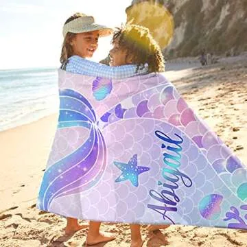 SearchI Personalized Beach Towel,Custom Name Beach Towel,Sand Free Microfiber Towels Custom Gifts with Name for Travel Beach Pool Bath Quick Dry Towel Blanket for Kids Adults 30''x60''(Mermaid)