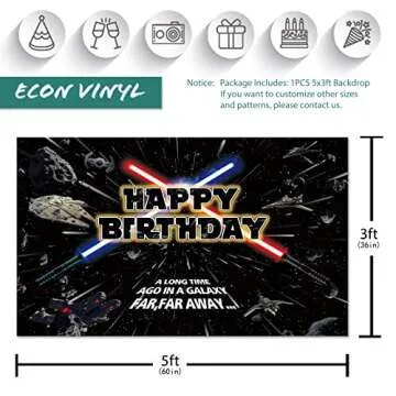 Transform your celebrations with the stunning Seasonwood Star Themed Backdrop. Ideal for baby boys' birthdays, this captivating backdrop measures an impressive 7x5ft (82in x 60in) and is designed to mesmerize your guests with its vibrant colors and intricate details. Crafted from durable, tearproof econ vinyl, this backdrop is tailored for longevity, ensuring it remains a dazzling addition to your event. Whether it’s a part of a Star Wars theme for your...