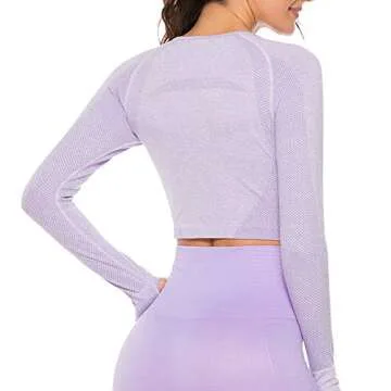 SEASUM Seamless Long Sleeve Workout Crop Top - Athletic Women's Fitness Tee