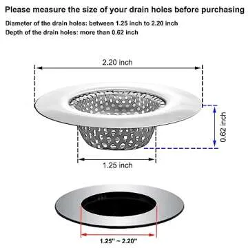 Show moreIntroducing the Seatery 1.25" Bathroom Sink Strainers, your ultimate solution for clogged drains and messy hair! Crafted from premium 304 stainless steel, these drain hair catchers are built to withstand daily use while maintaining a rust-free finish. With a top diameter of 2.25 inches and a 1.25-inch basket, this strainer is specifically engineered to fit snugly into your drains, ensuring maximum efficiency in keeping hair and debris from ruining your plumbing system. The innovative design of the tub strainer features 0.08-inch diameter poles, allowing for smooth drainage without compromising on functionality.