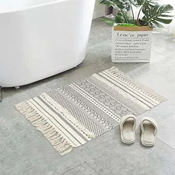 Seavish Accent Cotton Area Rug,2X3 Boho Bath Rug Aesthetic Hand Woven Farmhouse Throw Rug Shag Tufted Tassel Small Rug for Living Room Bedroom Bathroom Kitchen Dorm