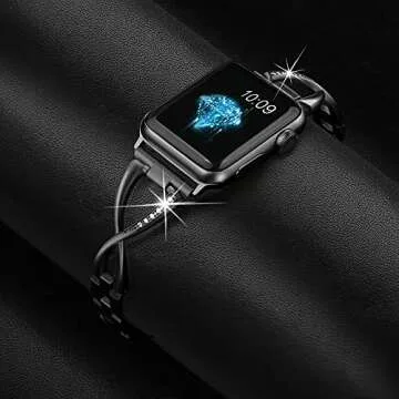 Secbolt Bands Compatible with Apple Watch Band 38mm 40mm 41mm 42mm(Series 10) Iwatch SE Series 10/9/8/7/6/5/4/3/2/1 Women Dressy Jewelry Stainless Steel Accessories Wristband Strap, Black
