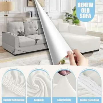 Show more Transform your living space with the KinCam L-Shaped Sofa Cover, expertly crafted from a luxurious blend of 88% polyester and 12% spandex. This cover is not only super soft and stretchable, ensuring a snug fit on most sectional couches, but also remarkably durable, providing long-lasting protection and comfort for your skin. Its high stretchability allows it to adapt to the myriad shapes of sectional sofas, offering a perfect fit for lengths between 71”-91”. Let the comfort of soft textures blend seamlessly with function and style in your home.