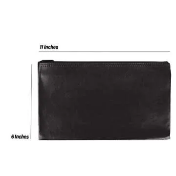 Security Bank Deposit/Utility Zipper Coin Bags, 11 X 6 Inches - Leather Zipper Pocket Money Holder, Safe for Cash, Coins, Legal Documents, Receipts - Black - 2 Pack