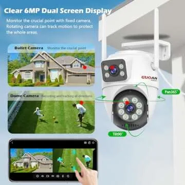 Security Camera Outdoor,【6MP Dual Lens】WiFi Outside Camera for Home Security with Power Cord, 360° View, Auto Tracking, Human Detection, Color Night Vision, IP66 Waterproof, 24/7 Record, SD/Cloud