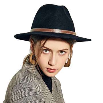 Sedancasesa Women's Belt Buckle Fedora Hat | Wide Brim Wool Felt Trilby Panama Hat
