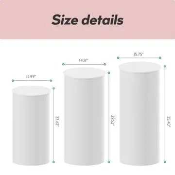 Show moreMake every celebration memorable with the Sedeke 3PC Cylinder Pedestal Stands. This exquisite set of three round cylinder displays offers unmatched versatility and elegance, perfect for adding a sophisticated touch to any occasion, be it a wedding ceremony, birthday party, or art decor. Each pedestal is designed with a hollow, lightweight structure, allowing you to easily overlap them for efficient storage. The removable lids add to their portability, making setup a breeze whether you're at home or on-site for an event.