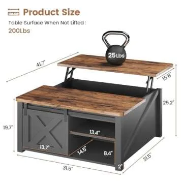 Show moreIntroducing the ultimate SEDETA 31.5" Lift Top Coffee Table, a flawless fusion of style and practicality that caters to both modern and farmhouse decor aesthetics. This beautifully designed coffee table is not just a piece of furniture; it is a multifunctional centerpiece that elevates the ambiance of your living space. The innovative lift top design transforms the tabletop from a comfortable height of 19.7 inches to a convenient 25.4 inches, making it the perfect solution for those cozy family dinners or for engaging in crafts right from the comfort of your couch.