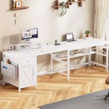 Show more Transform your workspace with the SEDETA L Shaped Computer Desk, an optimal choice for both style and functionality. Measuring an impressive 86.6 inches in length and 19.7 inches in width, this desk is designed to comfortably accommodate dual desktop computers and an additional notebook, making it an excellent solution for multitasking professionals and students alike. Offered in a sleek white finish, this modern desk not only enhances the aesthetic of your home office but also promotes efficiency through its clever design. Choose from a variety of configurations including an L shape or an elongated double desk to fit your unique space requirements.