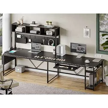 Show moreIntroducing the **SEDETA L Shaped Gaming Desk**, the perfect blend of style, functionality, and innovation for your home office or gaming setup. This reversible desk spans 67 inches in the corner configuration or extends to a generous 94.5 inches, accommodating up to three monitors and two desktop computers with ease. Crafted to maximize your productivity and workspace, it includes a powerful charging station with four outlets and two USB ports for all your device charging needs. The stunning RGB LED lights add a modern flair, allowing for a personalized ambience, synced with your favorite music. Featuring a keyboard tray, headphone hook, and pegboard for extra organization, the SEDETA desk ensures your workspace is not cluttered, enhancing both form and function.