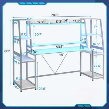 SEDETA White Gaming Desk 78.8'' with LED Lights, Hutch and Storage Shelves, Computer Desk with Monitor Stand, Large PC Gamer Desk Workstation, Ergonomic Gaming Table for Bedroom, Living Room