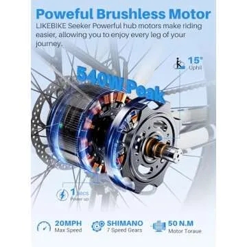 Show more Discover unparalleled adventure and joy with the Seeker 26" Electric Bike for Adults, designed to transform your commuting experience and leisure rides into an exhilarating journey. Its classic geometry frame not only showcases an appealing aesthetic but also is engineered for stability and security, providing a comfortable ride for individuals up to a remarkable 330 lbs. The detachable semi-hidden battery enhances anti-theft protection while boosting durability against water and dust, making it a reliable companion for urban explorers. Powered by a robust 350W brushless motor with peak performance of up to 540W, this electric bike reaches speeds of 20MPH, allowing you to cruise effortlessly whether you choose pure electric or pedal-assist riding modes.
