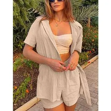 Show more Introducing the ultimate summer wardrobe staple that will elevate your style and comfort: the two-piece linen shorts sets for women. Crafted from a premium blend of breathable cotton and lightweight linen, this chic outfit is perfect for any warm-weather occasion. The set features a stylish short-sleeve linen top that not only looks fabulous but also promises excellent comfort during those hotter days. The accompanying drawstring shorts deliver a relaxed fit that’s ideal for lounging around, hitting the beach, or socializing at summer parties. Whether you're pairing it with a trendy crop top, a casual t-shirt, or your favorite sandals, this outfit seamlessly fits into your summer repertoire.