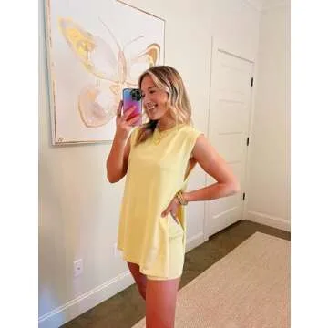 Show moreIntroducing the SeekMe Women's Summer Knit Sweater Set 1887-Yellow-S-FY, where style meets comfort in perfect harmony! Designed for the modern woman, this stunning 2-piece lounge set is crafted from a luxurious soft and breathable knit fabric, making it ideal for those sunny days and warm nights. The chic sleeveless tunic top boasts a high boat neckline, dropped armholes, and a stylish vented hemline, ensuring a slim fit that flatters every silhouette. Paired with high-waisted, pull-on shorts featuring a flat front and back, this ensemble is your ultimate go-to for casual outings, beach days, or lounging at home.