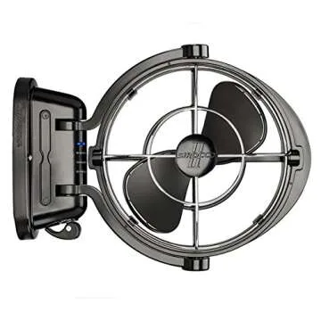SEEKR Sirocco II™ Fan from by Caframo. 12V/24V Auto-Sensing DC, Omnidirectional Low-Power Draw Fan for Boats and RVs. Hardwire Installation Required. Made in Canada. Black.