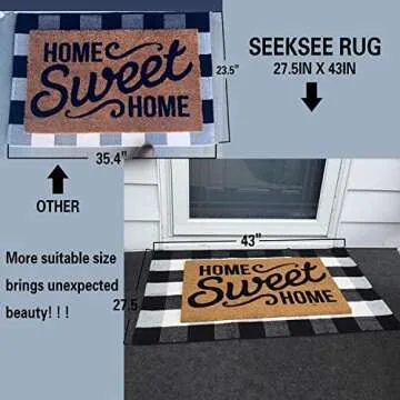 Show more Introduce an element of style and comfort to your home with the SEEKSEE Buffalo Plaid Rug. Crafted with meticulous attention to detail, this rug has been enhanced from a thickness of 1020g/㎡ to an impressive 1200g/㎡, making it not only visually stunning but also incredibly durable and comfortable to step on. The 100% cotton material is hand-woven, eco-friendly, and designed for long-term use without sacrificing softness or flexibility.