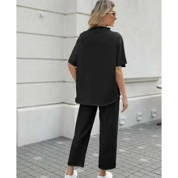 SeeLuNa Women's Two Piece Outfits 3/4 Batwing Sleeve Capelet Crew Neck Pullover Top Wide Leg Pants Lounge Set(Black,S)