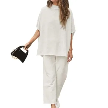 Show moreIntroducing the SeeLuNa Women's Two Piece Outfits – a stylish blend of comfort and versatility that’s perfect for your vibrant lifestyle. Crafted with meticulous attention to detail, this exquisite lounge set features a 3/4 elbow sleeve capelet with a chic raw hem, offering a contemporary twist to your traditional loungewear. The elegant rolled funnel neck not only adds warmth but also brings a touch of sophistication to your outfit. Designed for a flattering loose fit, each piece wraps you in ultimate comfort while maintaining a polished look, making it ideal for your busy schedule.