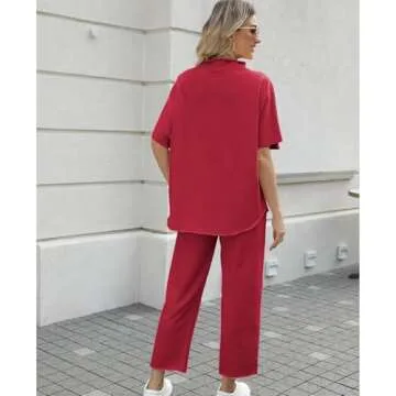 SeeLuNa Women's Two Piece Outfits 3/4 Batwing Sleeve Capelet Crew Neck Pullover Top Wide Leg Pants Lounge Set(Wine Red,M)