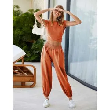 Seetaa Womens 2 Piece Sweatsuits Sets Casual Workout Cropped Tee Top High Rise Sweatpants Athletic Tracksuits(Rust-XS)