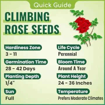 Show more Introducing the Seflore 400+ Climbing Rose Seeds, your gateway to a stunning floral paradise right in your garden! These non-GMO heirloom seeds promise not just vibrant blooms but also a gardening experience steeped in quality and sustainability. With a germination period of just 28 to 42 days when sown correctly, you’ll soon be enchanted by the sight of your garden transforming into a vibrant tapestry of climbing roses. Whether you’re an experienced gardener or just starting your green journey, these seeds are packaged beautifully and are designed to last for several years before planting, ensuring you have plenty of time to plan your floral masterpiece.