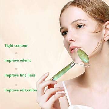 SEGMINISMART Jade Roller Massager for Face Anti Aging Gua Sha Scraping Massage Tool Set Therapy 100% Natural Jade Facial Roller Anti Wrinkle and Skin Rejuvenate