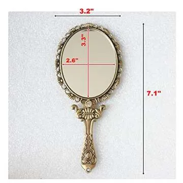 SEHAMANO Vintage Hand Mirror with Embossed Rose on The Back Handheld Makeup Beauty Metal Mirror Compact Purse Small Mirror (Brass (Matt Gold))