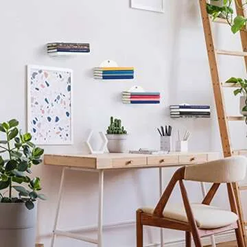SEHERTIWY Floating Bookshelves for Wall, 4 Pack Steel Constructed Invisible Bookshelves Wall Mounted, Small Bookshelf for Small Spaces, Book Shelf Organizer, Bedroom Bookshelves (White)