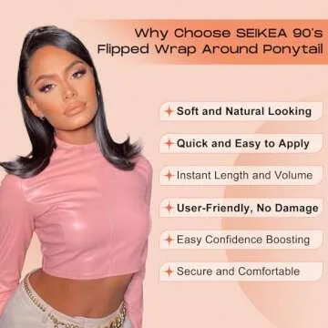 SEIKEA 16" Flipped Ponytail Extension Smooth Tangle-Resistant 90's Retro Wrap Around Pony Tail Hair Extensions Natural Soft Clip in Hair Extensions Ponytail Synthetic Fake Hairpiece, Black Brown