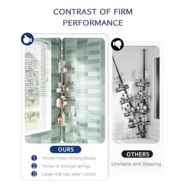 SEIRIONE Rustproof Shower Caddy Corner and Shower Organizer Corner for Bathroom,Corner Shower Caddy Tension Pole with 4 Adjustable Baskets for Shower Accessories, 61.3 to 113 Inch Height, Stainless